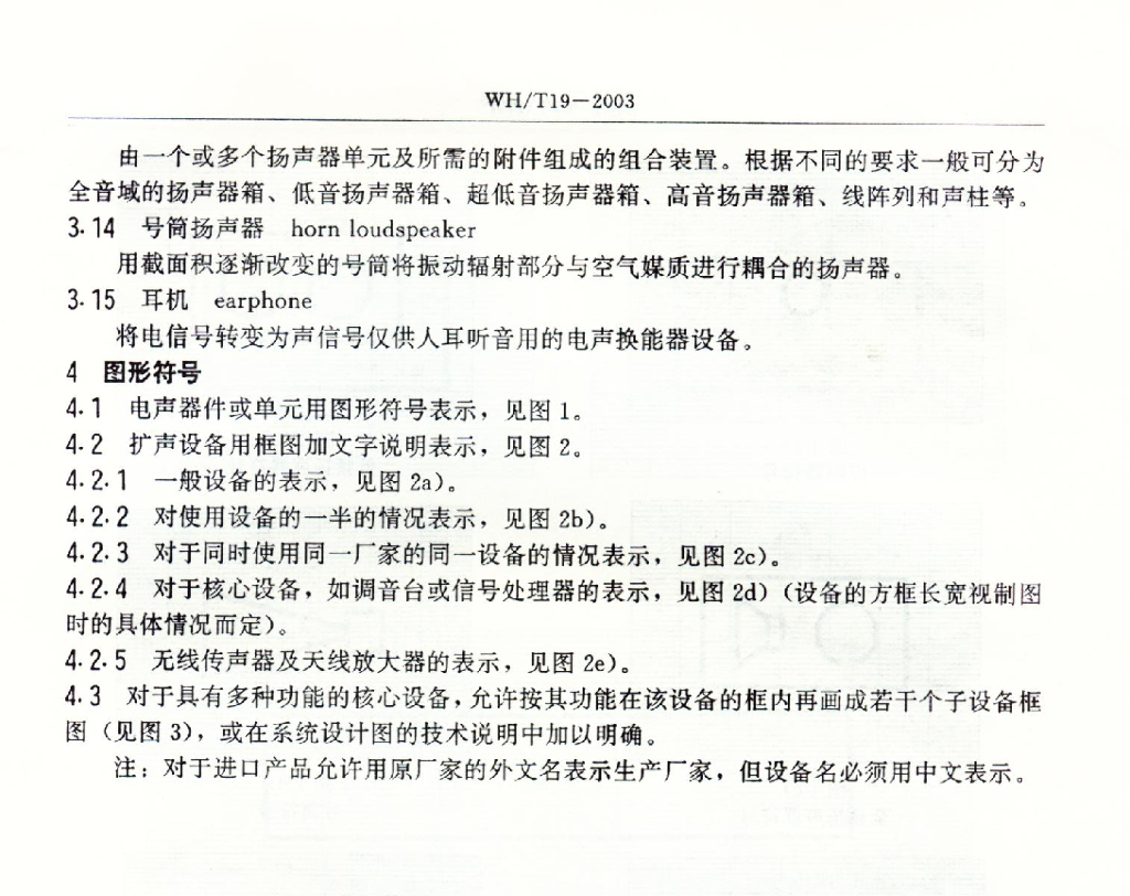 WH/T 19-2003 扩声系统的图符代号及制图规则