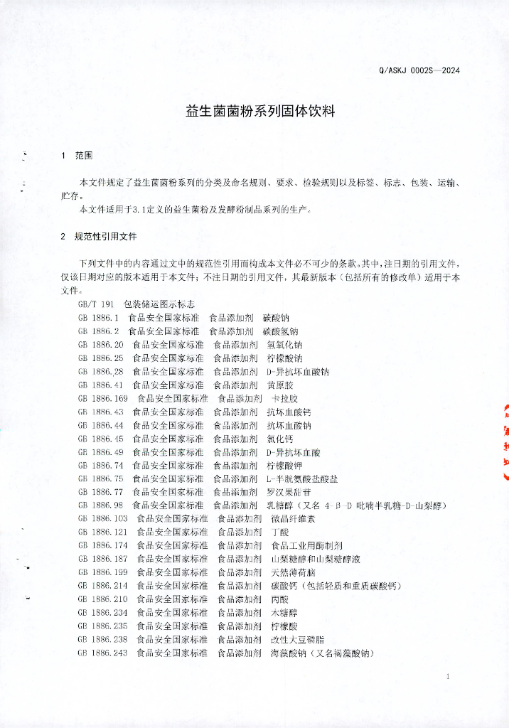 Q/ASKJ 0002S-2024 益生菌菌粉系列固体饮料