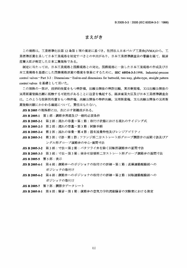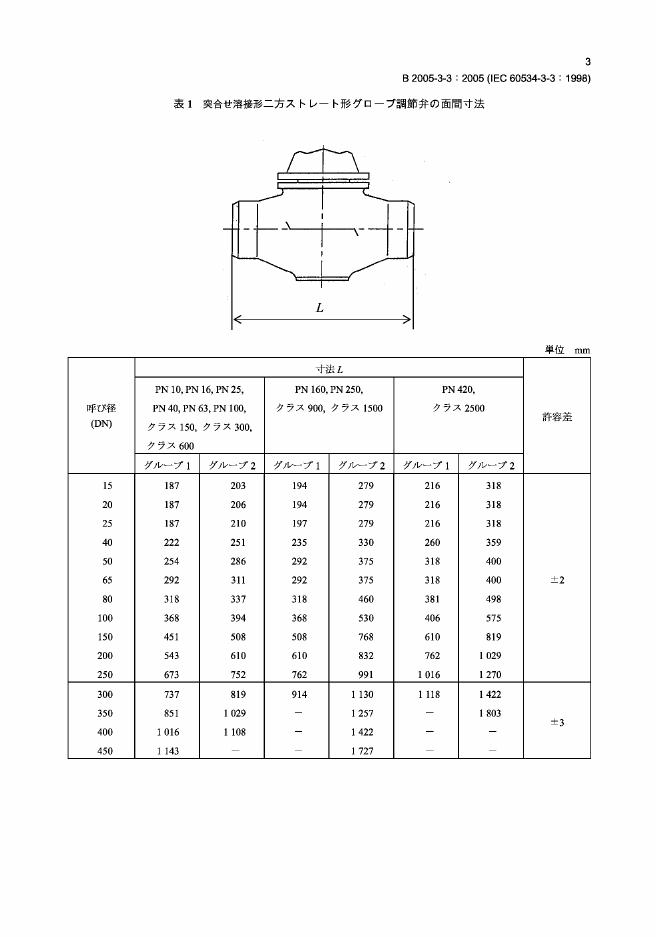 JIS B2005-3-3-2005 Industrial-process control valves-Part 3-3 Dimensions-End-to-end dimensions for buttweld, two-way, globe-type, straight pattern control valves