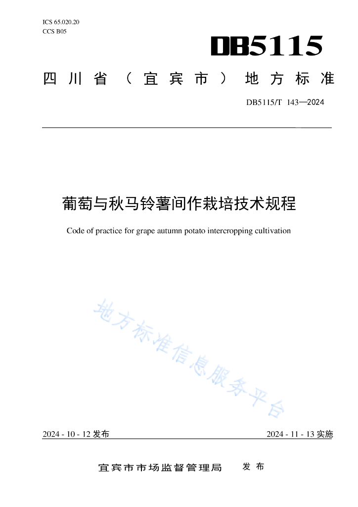 DB5115/T 143-2024 葡萄与秋马铃薯间作栽培技术规程