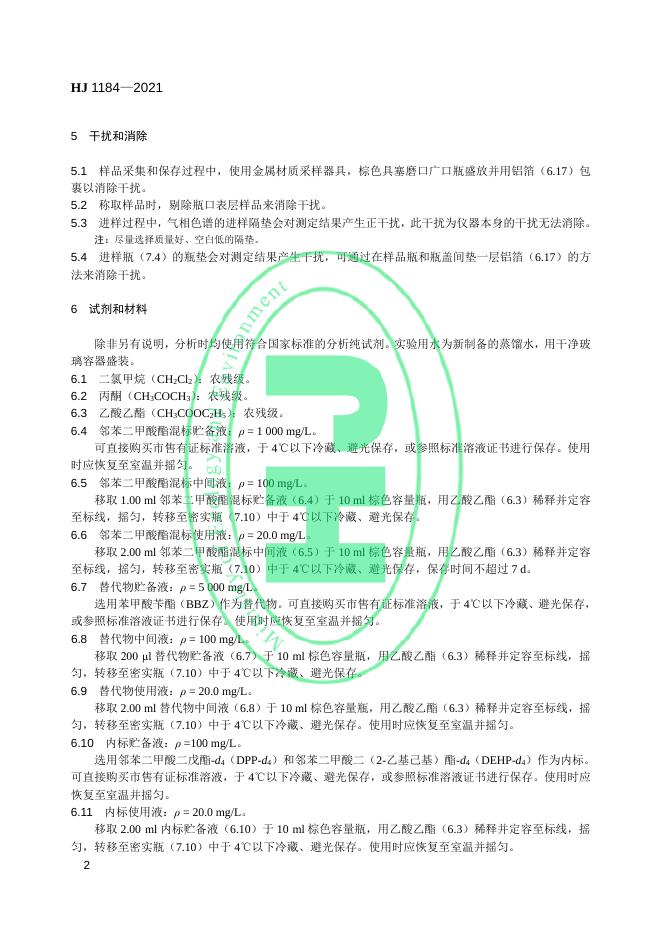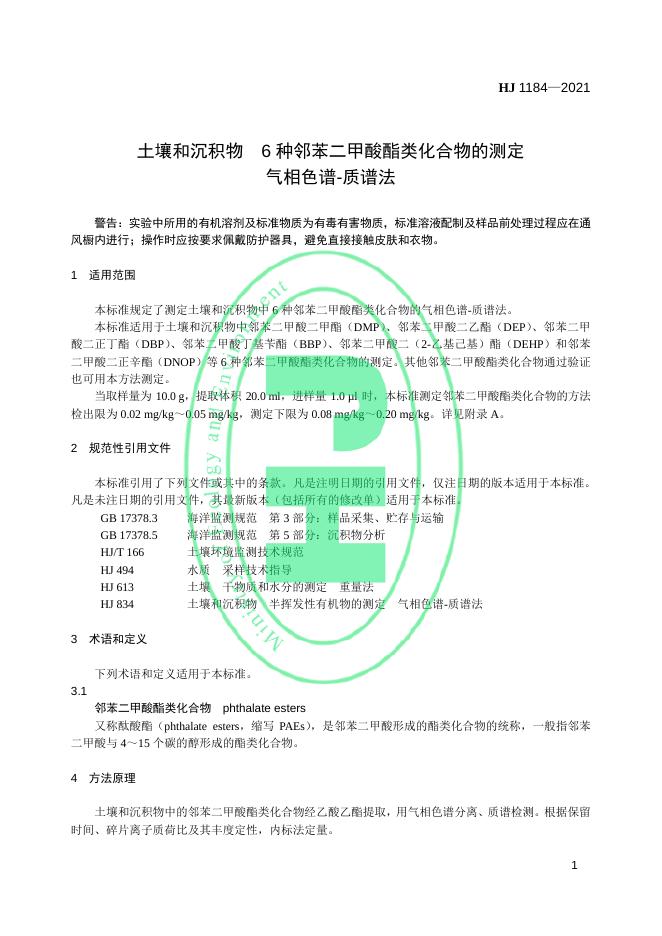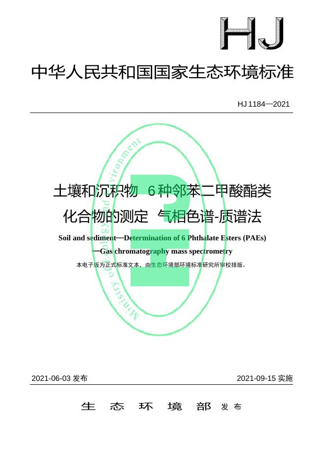 HJ 1184-2021 土壤和沉积物 6 种邻苯二甲酸酯类化合物的测定 气相色谱-质谱法