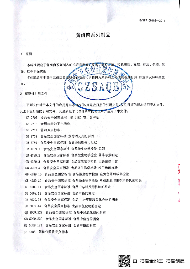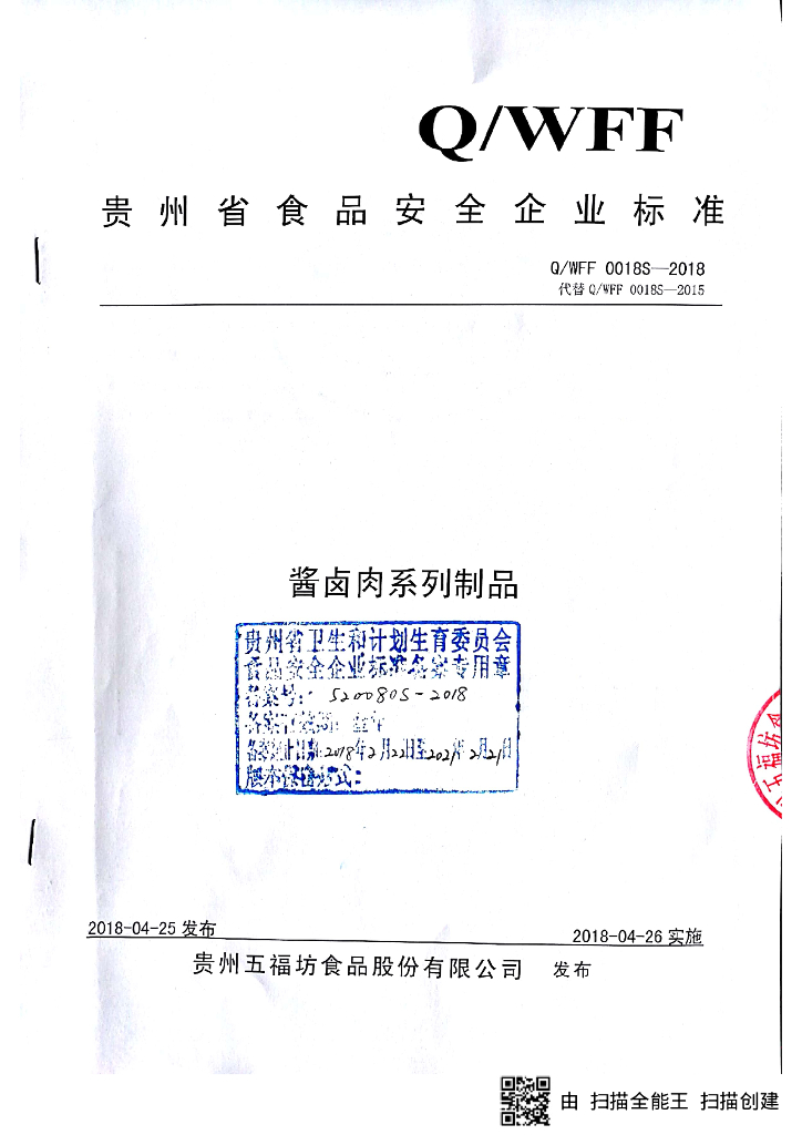 Q/WFF 0018S-2018 酱卤肉系列制品