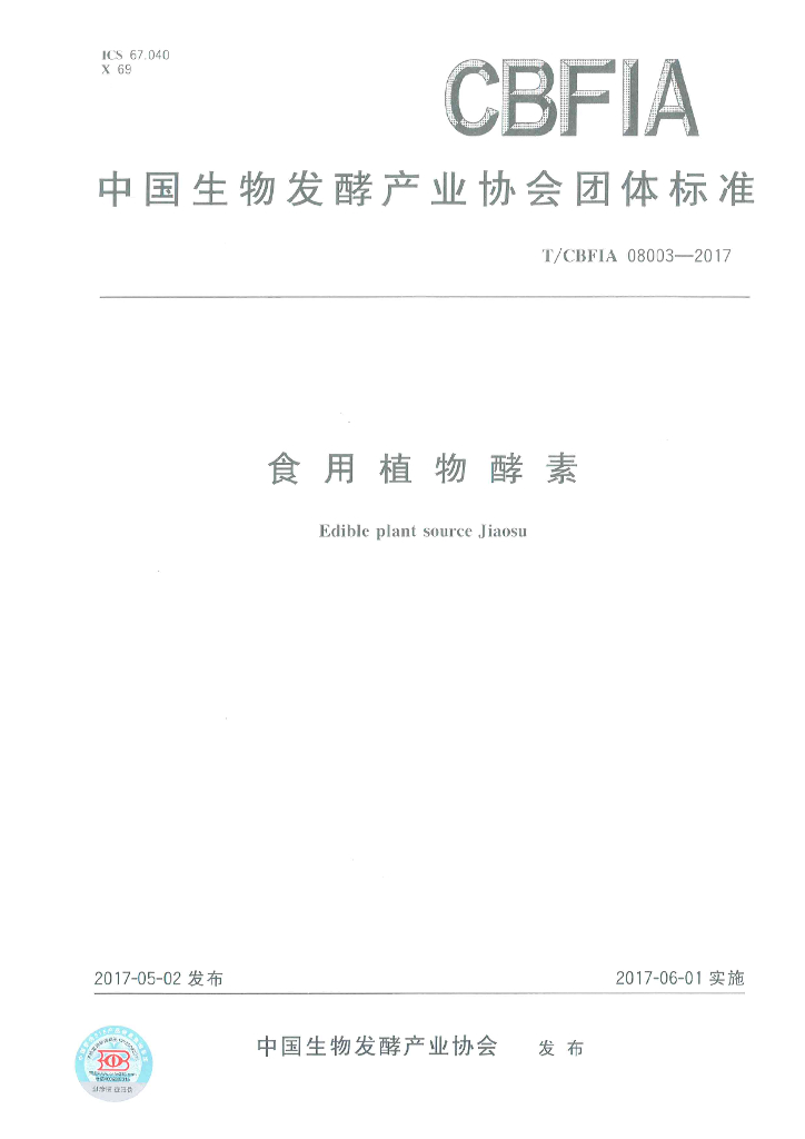 - 国际标准分类号:67.040