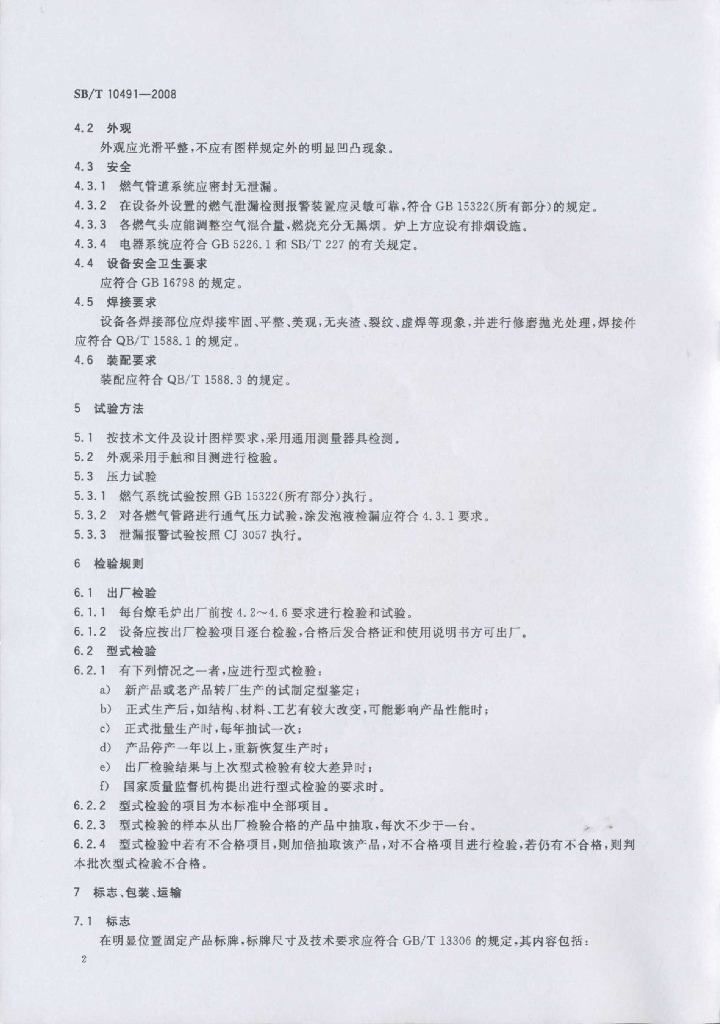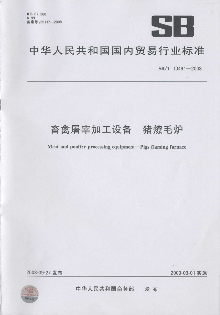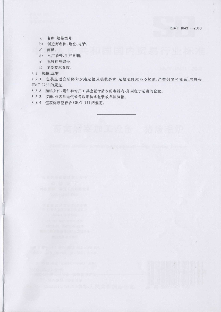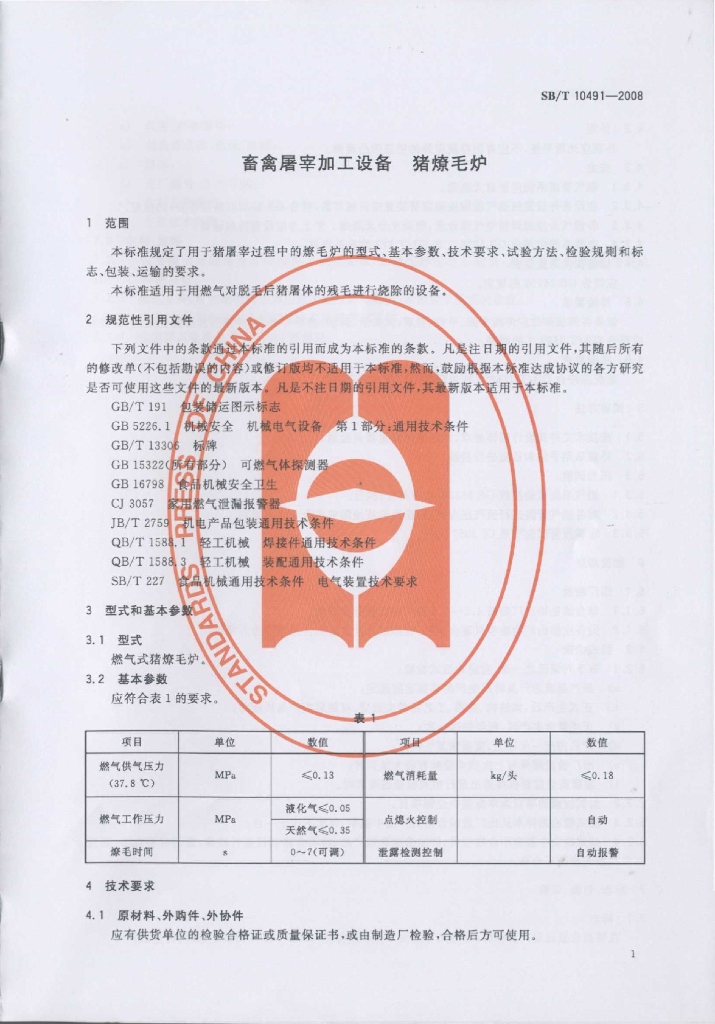 SB/T 10491-2008 畜禽屠宰加工设备 猪燎毛炉