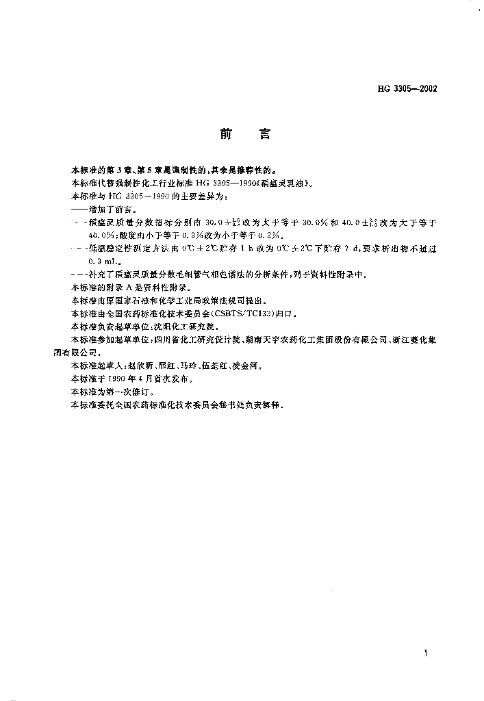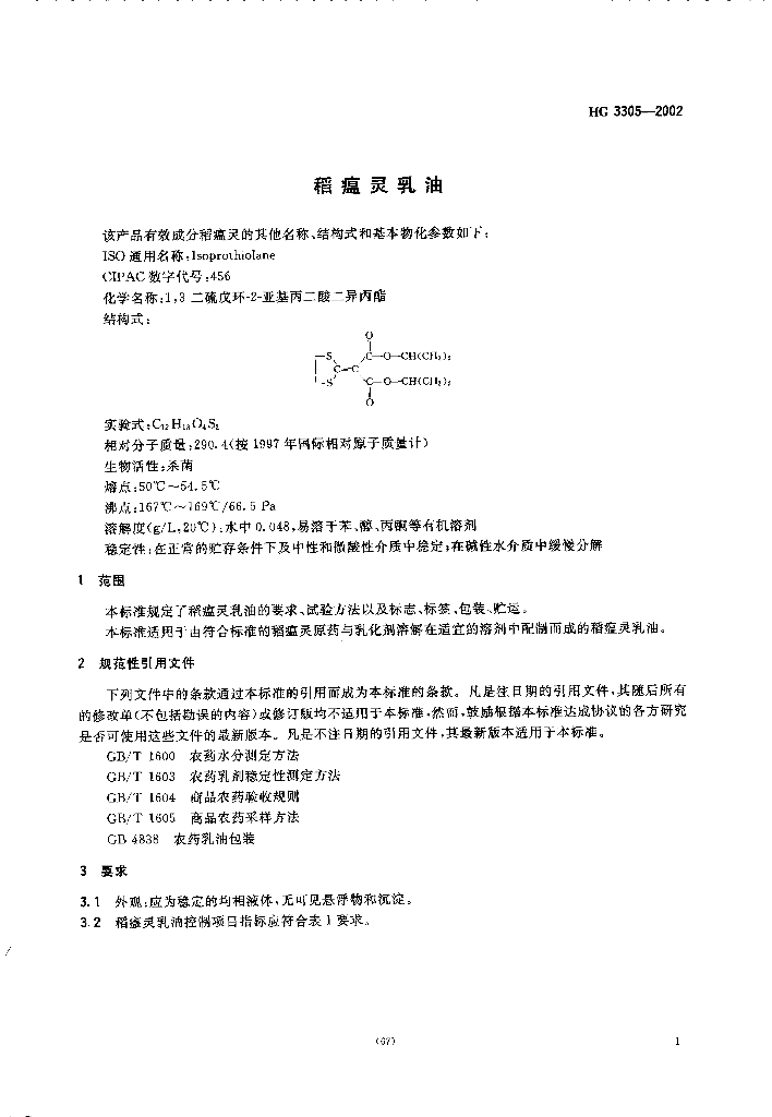 HG 3305-2002 稻瘟灵乳油