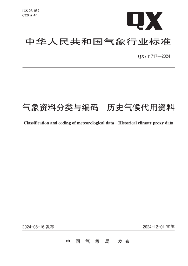 QX/T 717-2024 气象资料分类与编码 历史气候代用资料