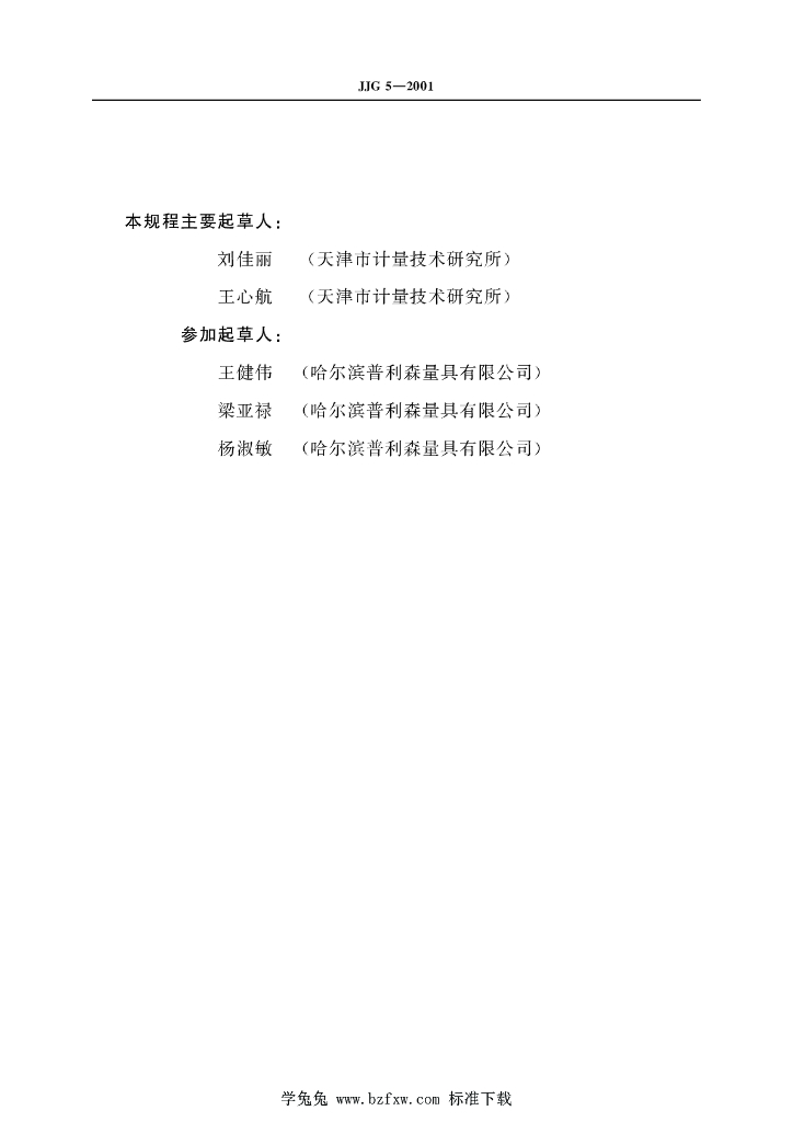 刘佳丽(天津市计量技术研究所)、王心航(天津市计量技术研究所)、王健伟(哈尔滨普利森量具有限公司)、梁亚禄(哈尔滨普利森量具有限公司)、杨淑敏(哈尔滨普利森量具有限公司)