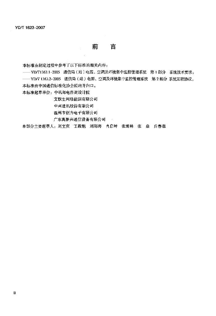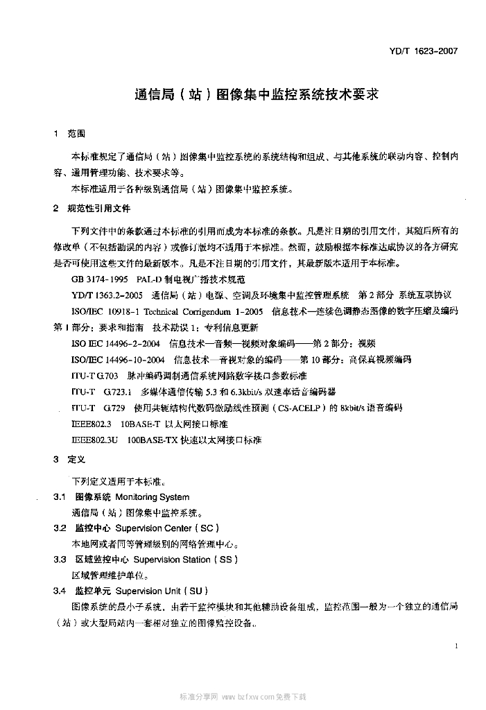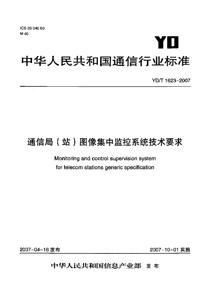 YD/T 1623-2007 通信局(站)图像集中监控系统技术要求