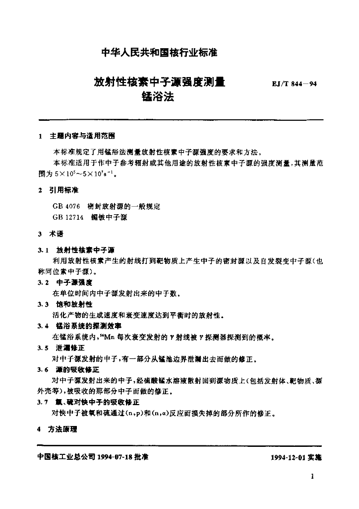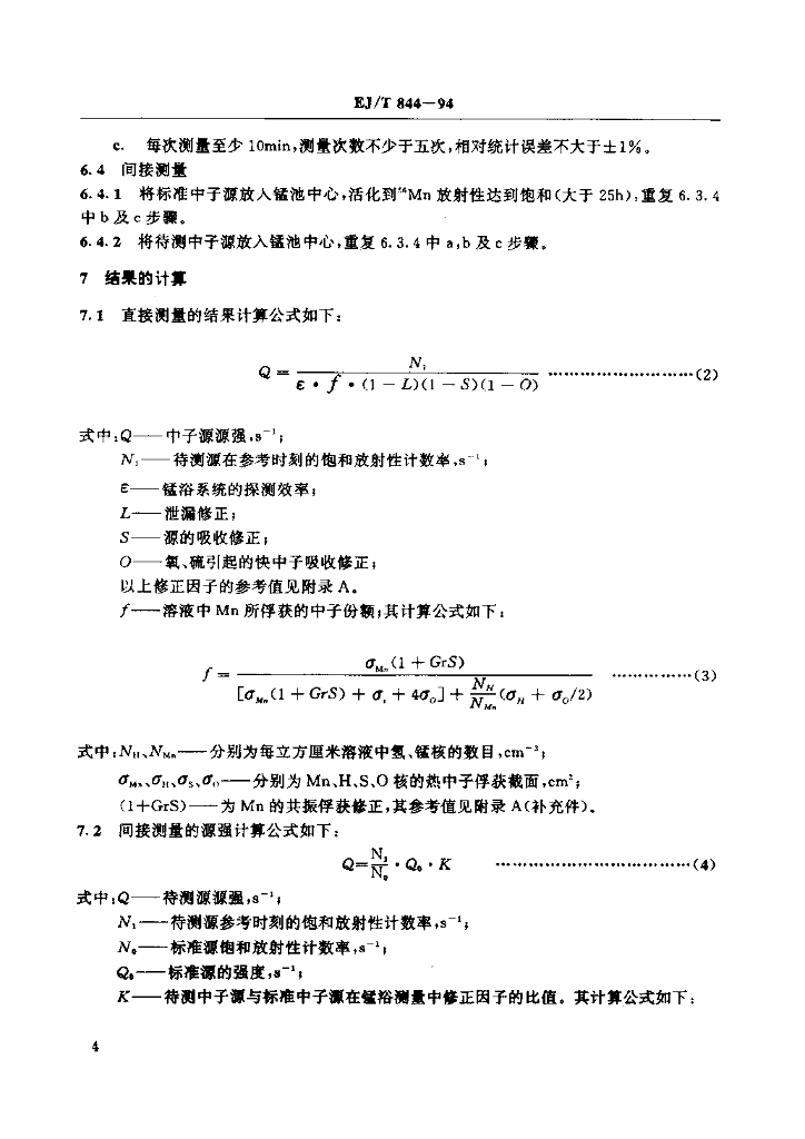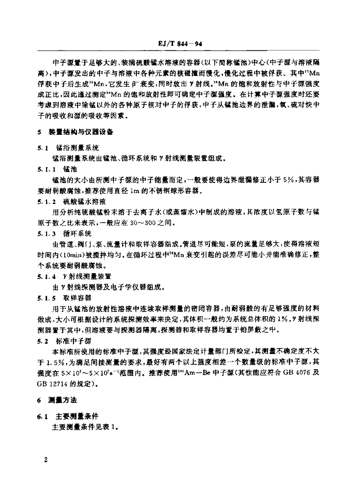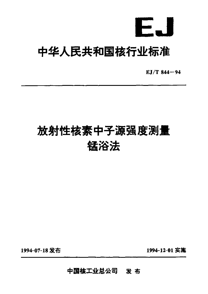 EJ/T 844-1994 放射性核素中子源强度测量锰浴法