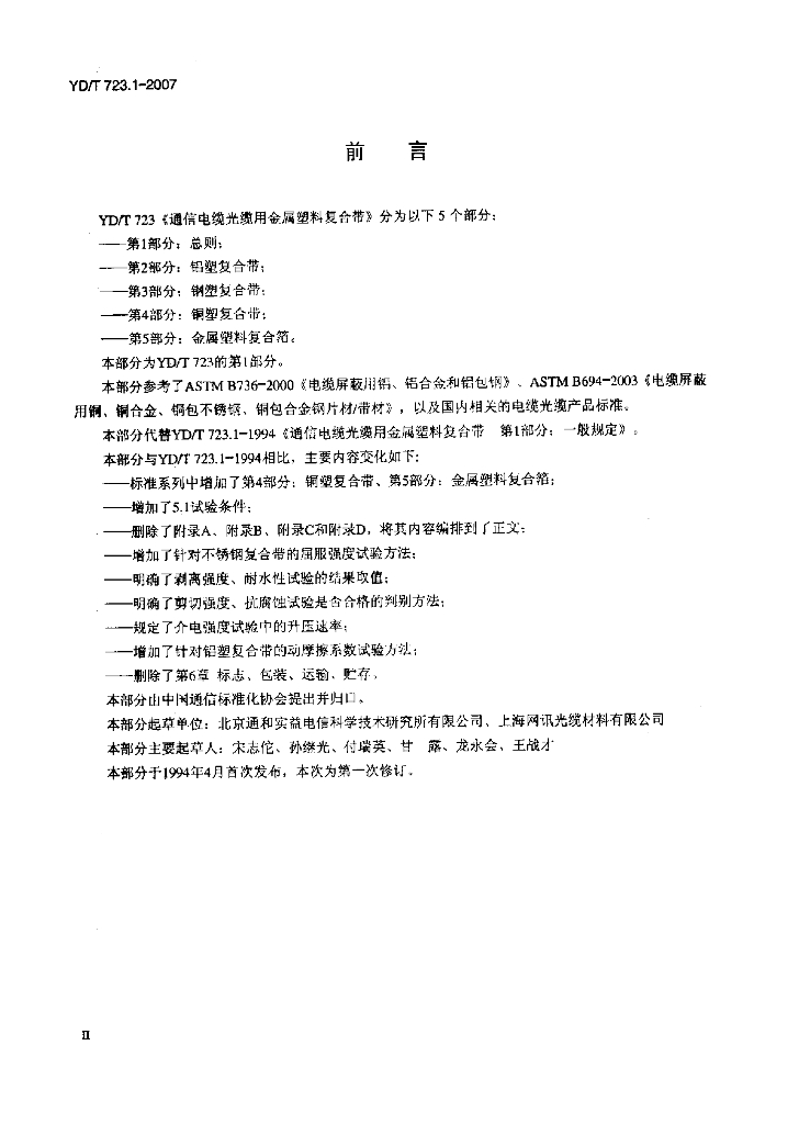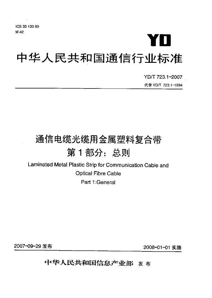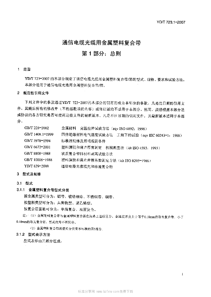 YD/T 723.1-2007 通信电缆光缆用金属塑料复合带 第1部分:总则
