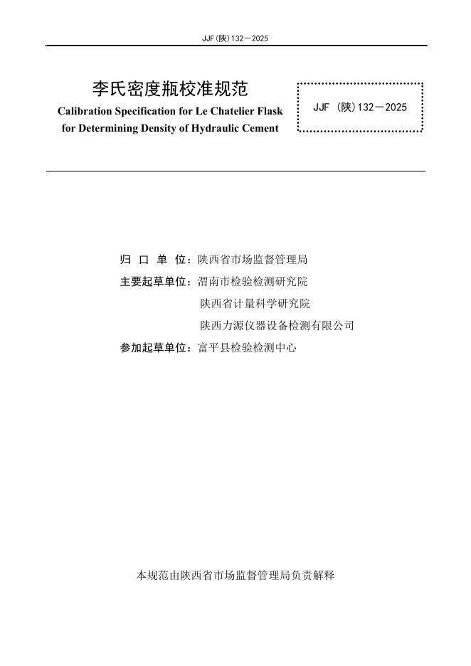 JJF(陕)132-2025 李氏密度瓶校准规范