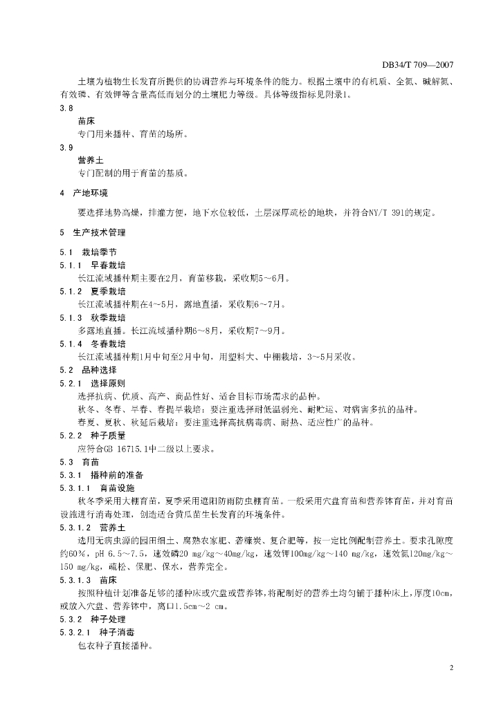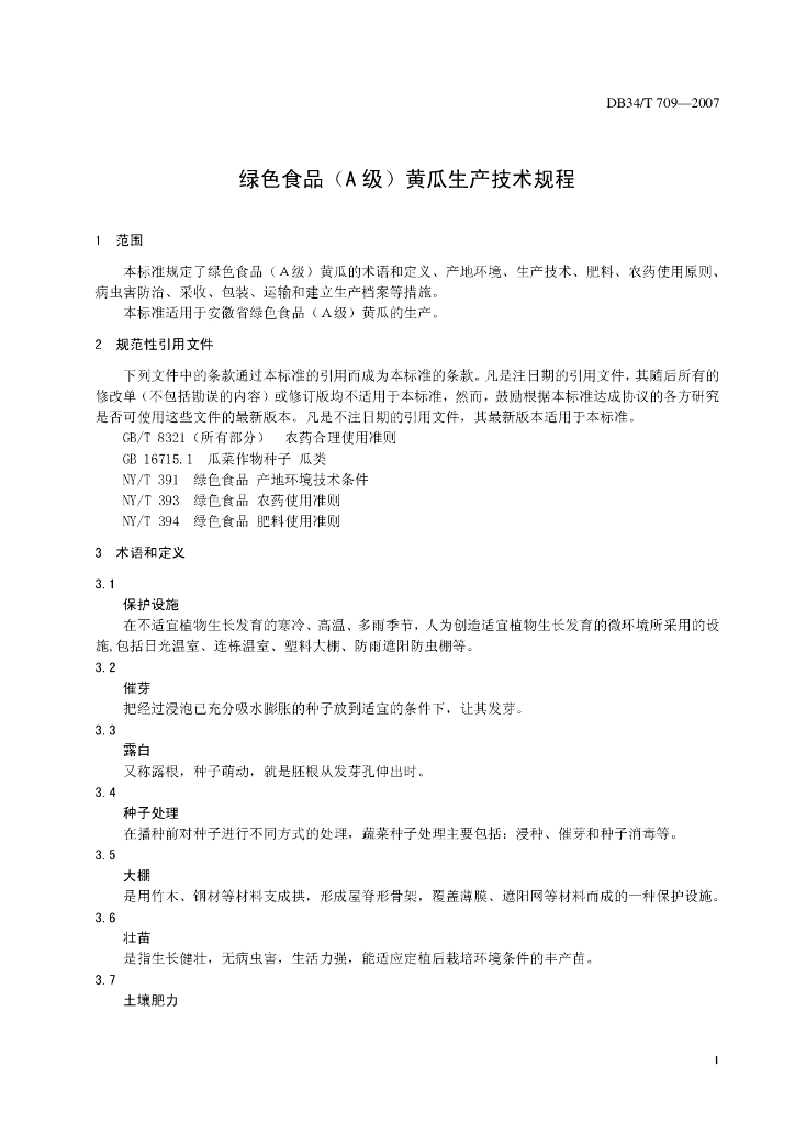DB34/T 709-2007 绿色食品(A级)黄瓜生产技术规程