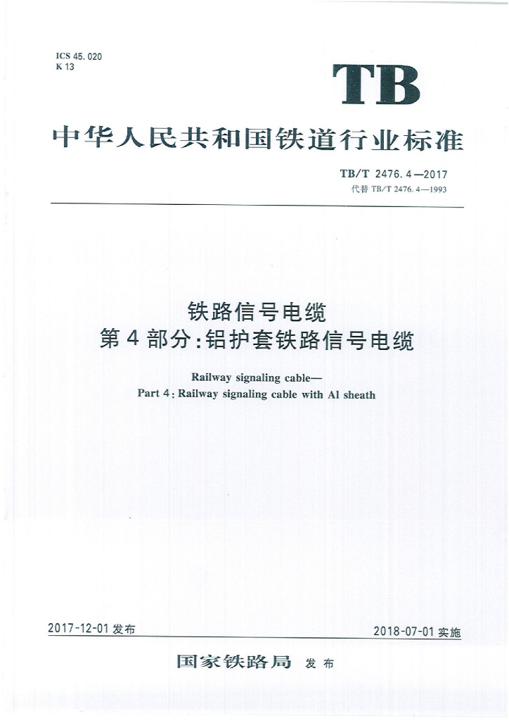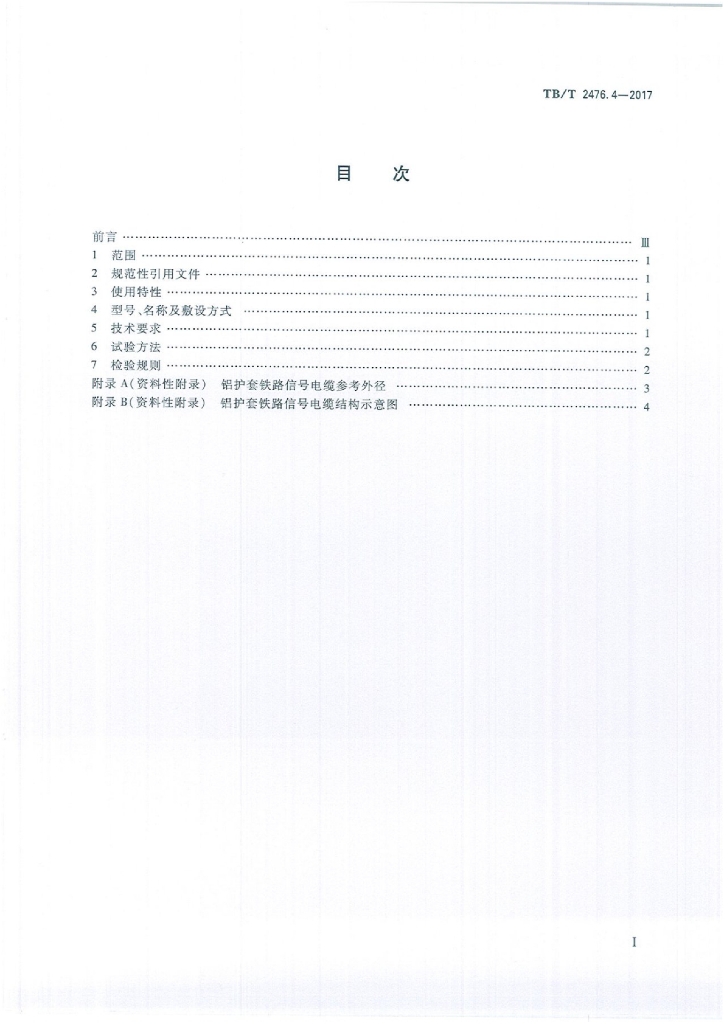 TB/T 2476.4-2017 铁路信号电缆 第4部分:铝护套铁路信号电缆