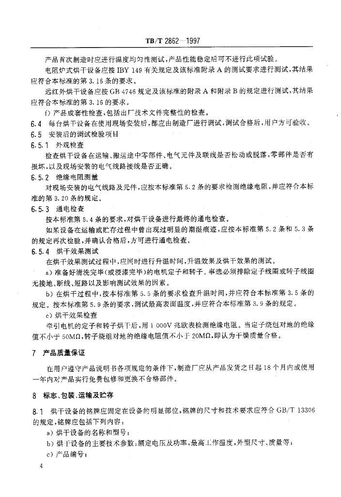 TB/T 2862-1997 牵引电机烘干设备技术条件
