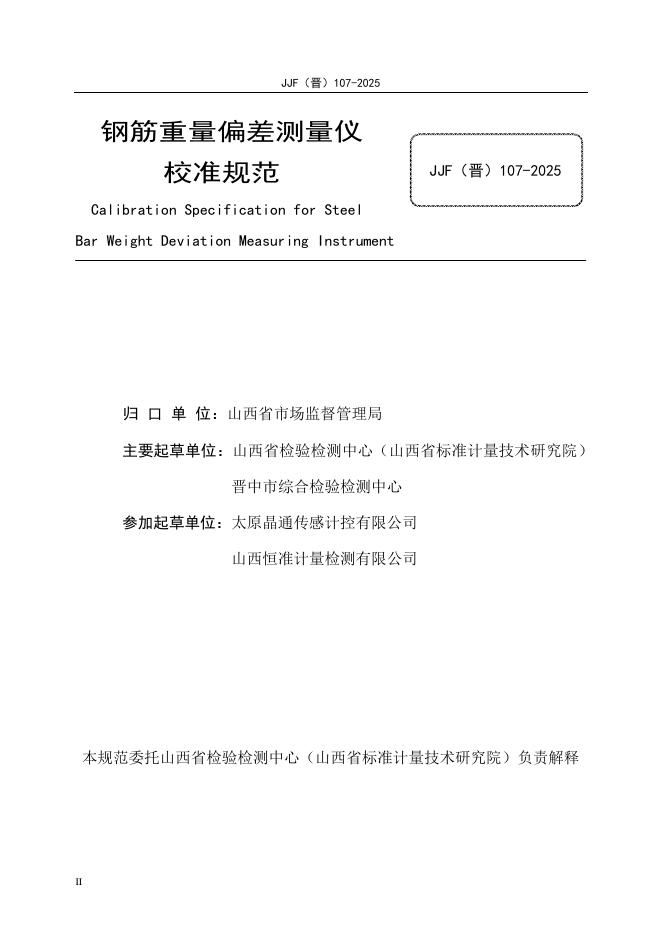 JJF(晋)107-2025 钢筋重量偏差测量仪校准规范