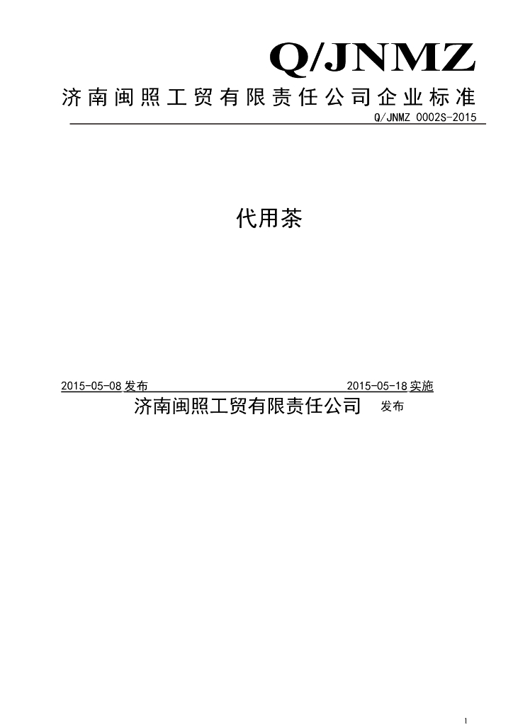 Q/JNMZ 0002S-2015 济南闽照工贸有限责任公司 代用茶
