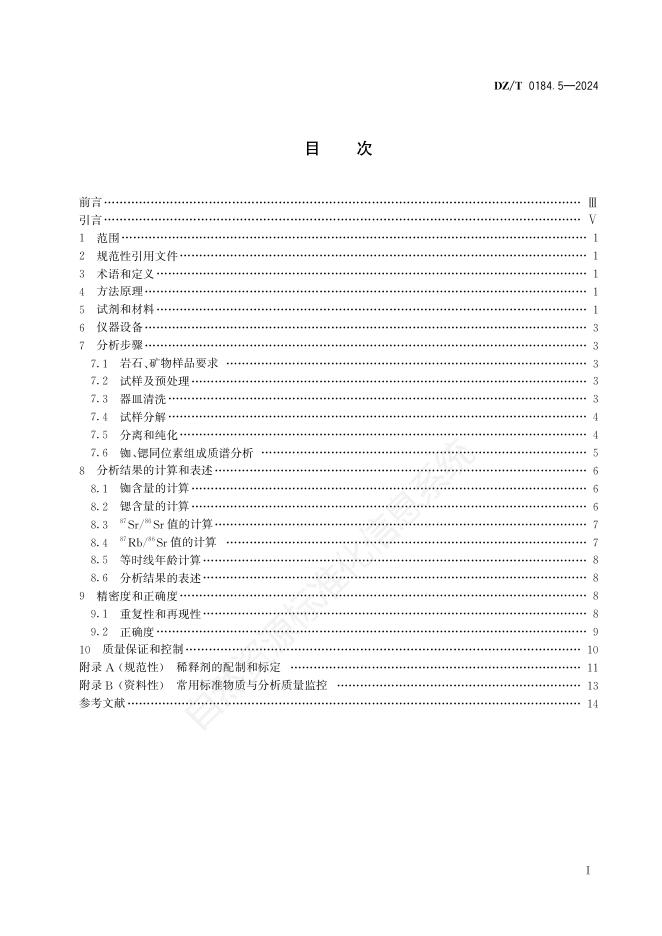 DZ/T 0184.5-2024 地质样品同位素分析方法 第5部分:地质样品 铷-锶体系同位素年龄和锶同位素比值测定 热电离质谱法