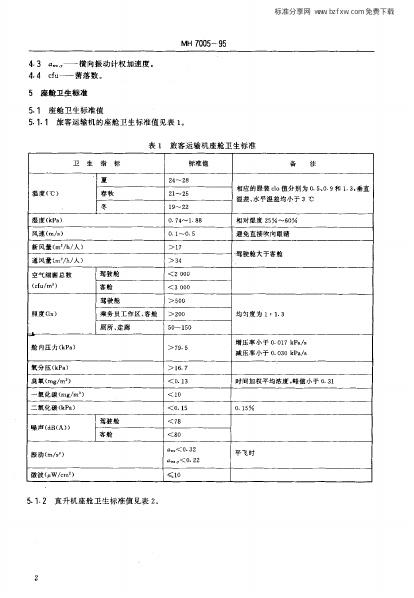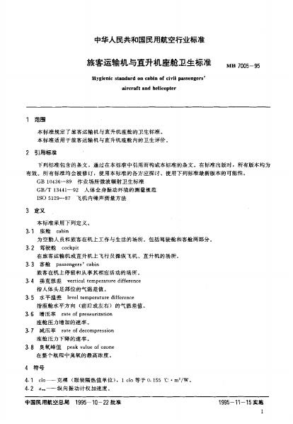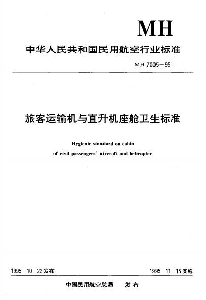 MH/T 7005-1995 旅客运输机与直升机座舱卫生标准