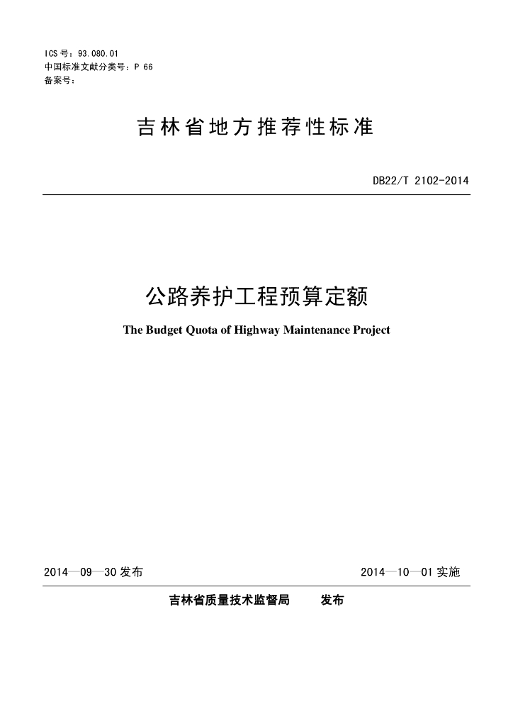 DB22/T 2102-2014 公路养护工程预算定额