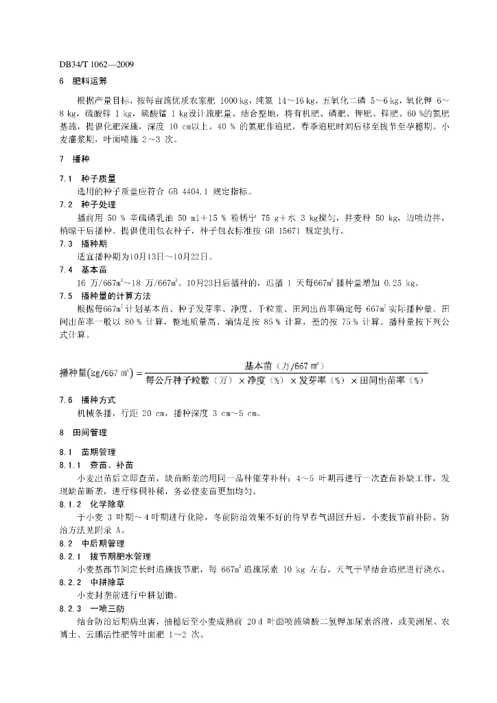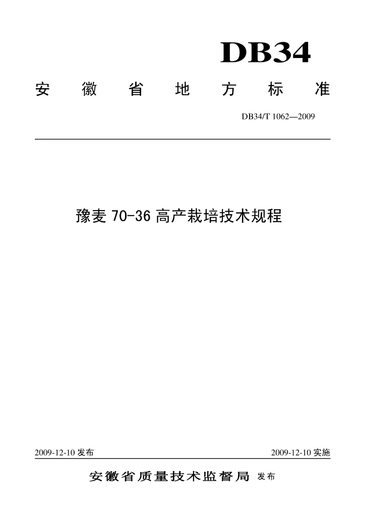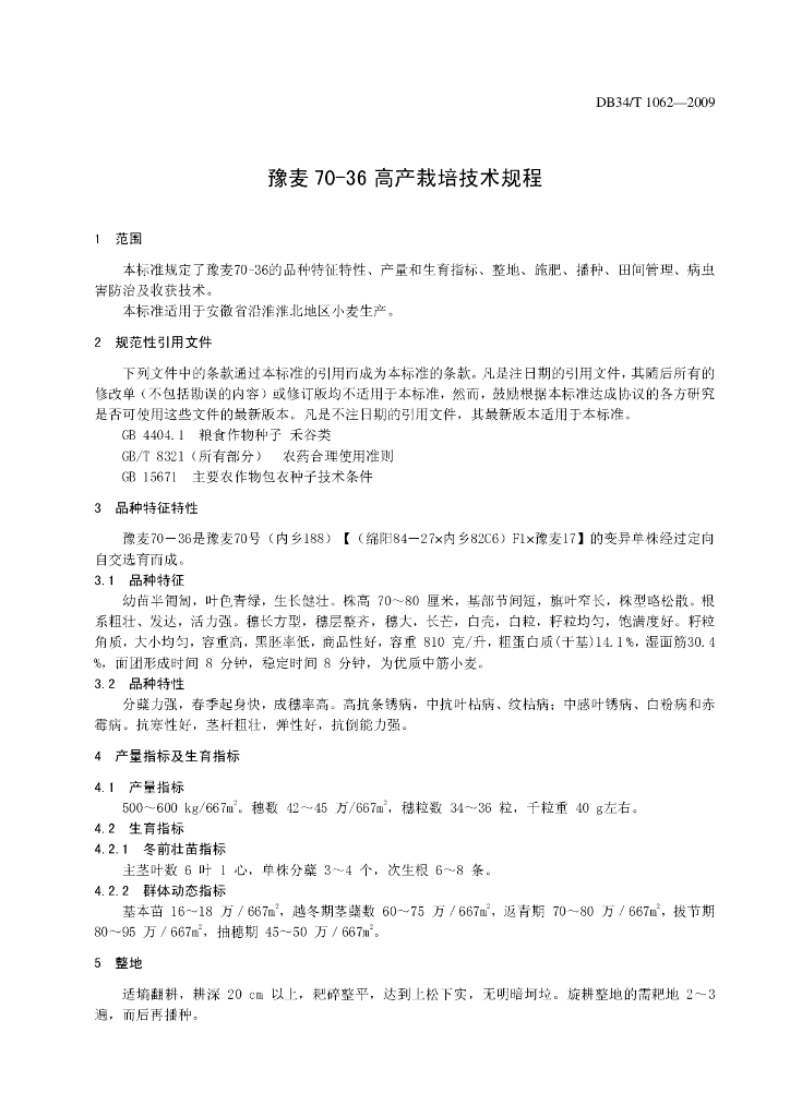 DB34/T 1062-2009 豫麦70-36高产栽培技术规程