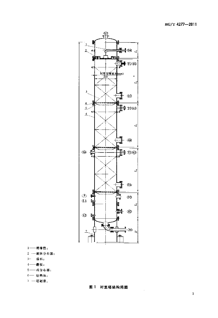 HG/T 4277-2011 钢制塑料衬里塔式容器技术条件