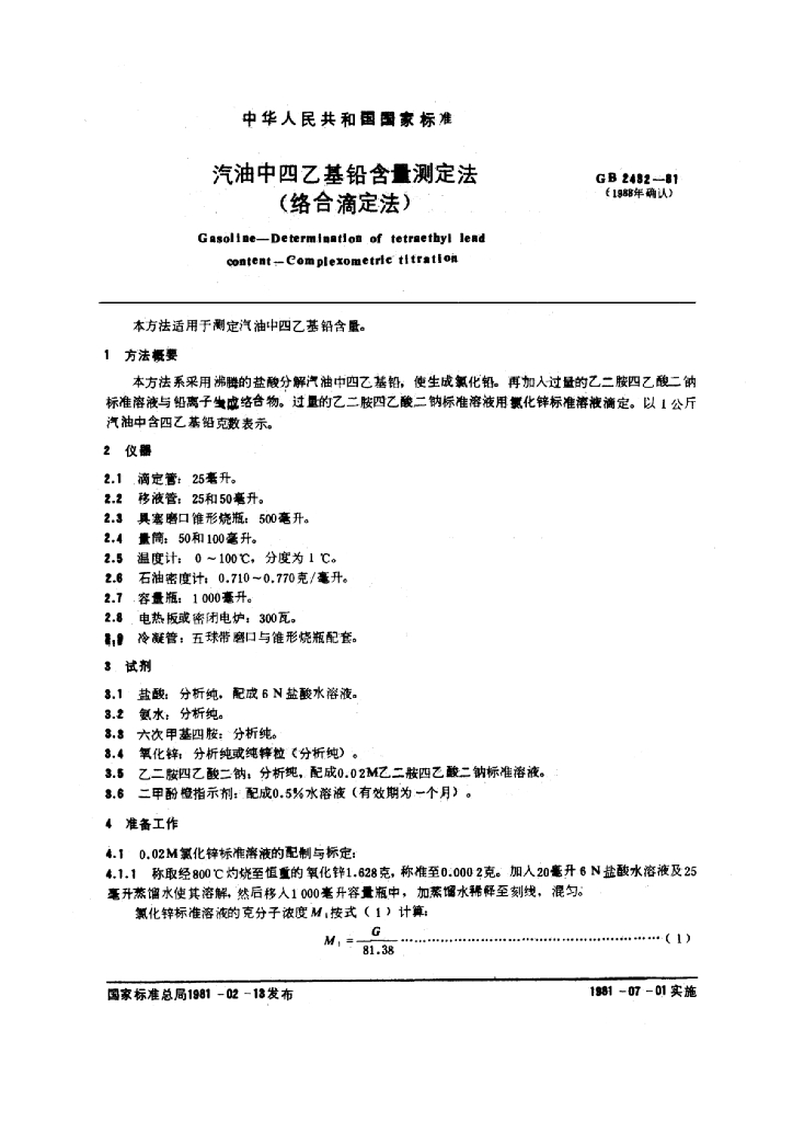 GB/T 2432-1981 汽油中四乙基铅含量测定法(络合滴定法)