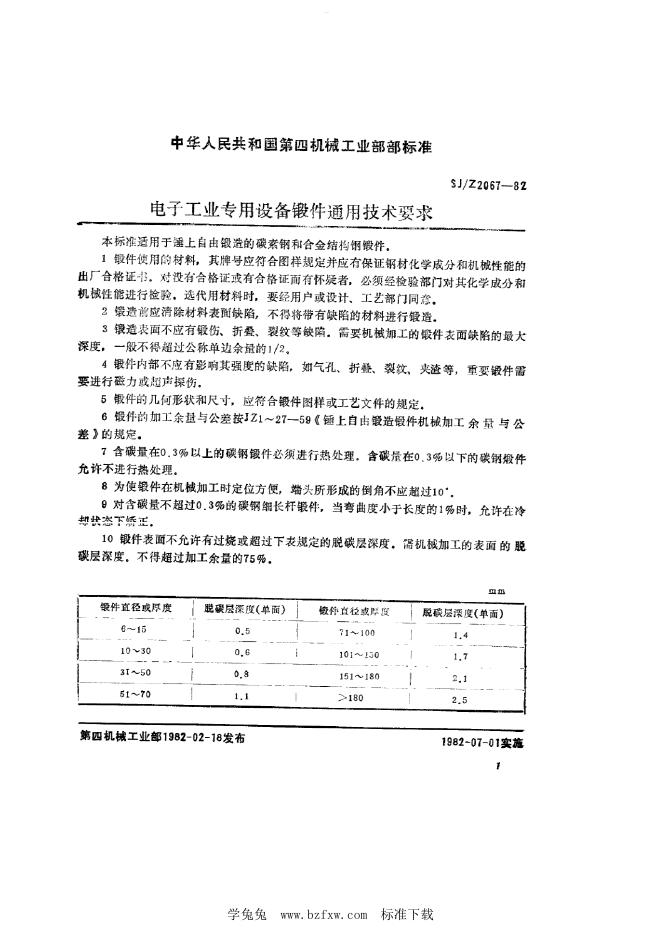 SJ/Z 2067-1982 电子工业专用设备锻件通用技术要求