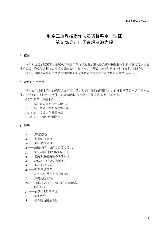 HB 5299.2-2014(2017) 航空工业焊接操作人员资格鉴定与认证 第2部分:电子束焊及激光焊