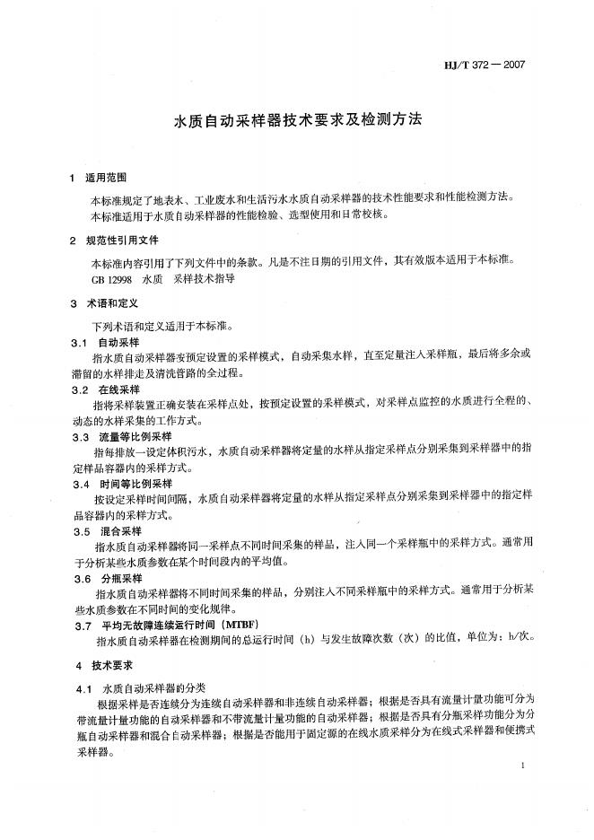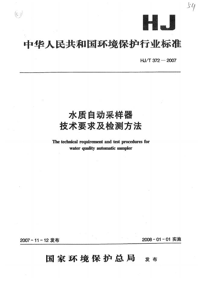 HJ/T 372-2007 水质自动采样器技术要求及检测方法