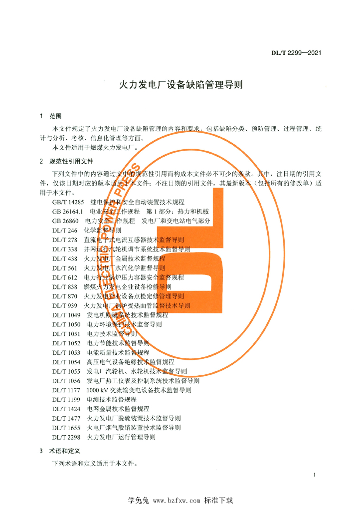DL/T 2299-2021 火力发电厂设备缺陷管理导则