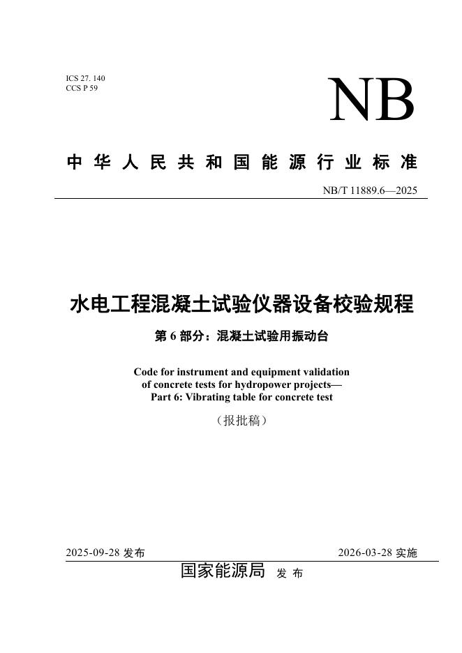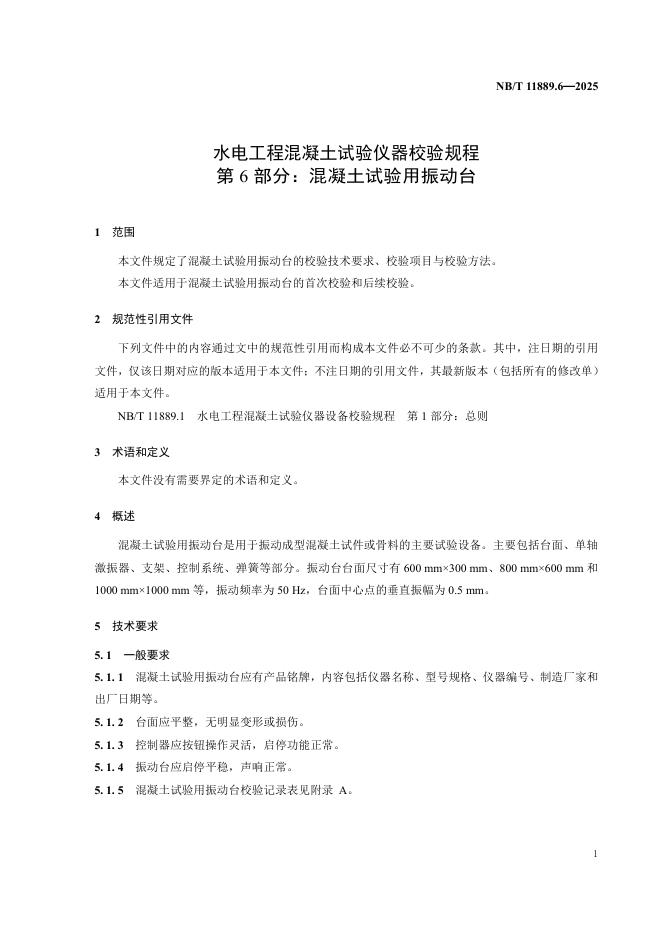 NB/T 11889.6-2025 水电工程混凝土试验仪器设备校验规程 第6部分:混凝土试验用振动台