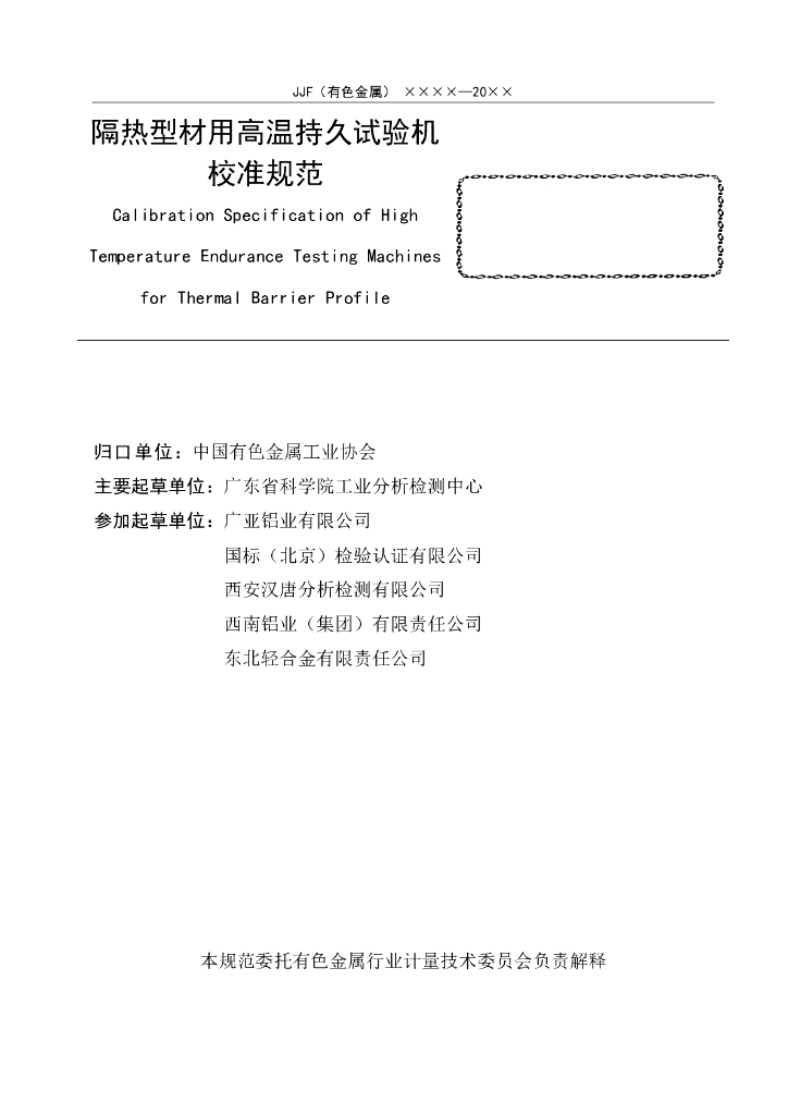 JJF(有色金属)0017-2023 隔热型材用高温持久试验机校准规范(报批稿)