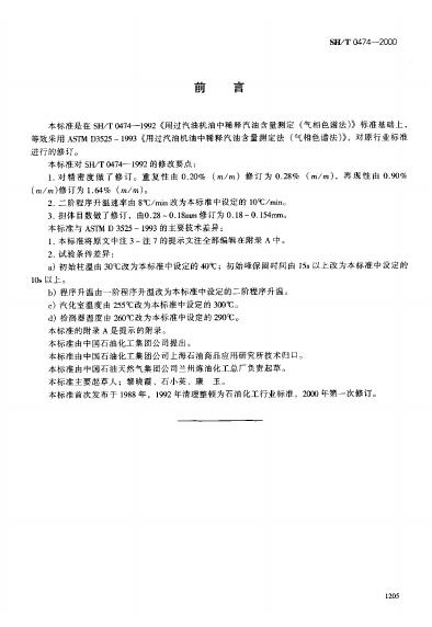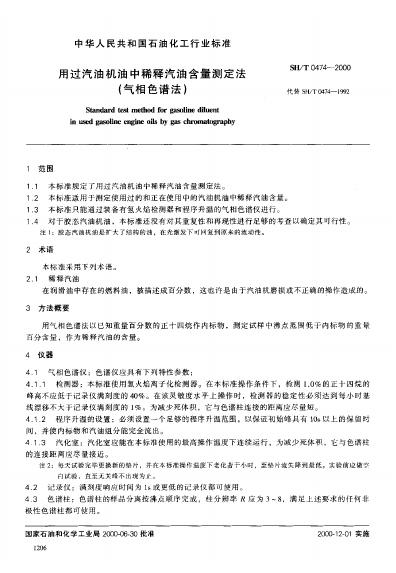 SH/T 0474-1992 用过汽油机油中稀释汽油含量测定法(气相色谱法)