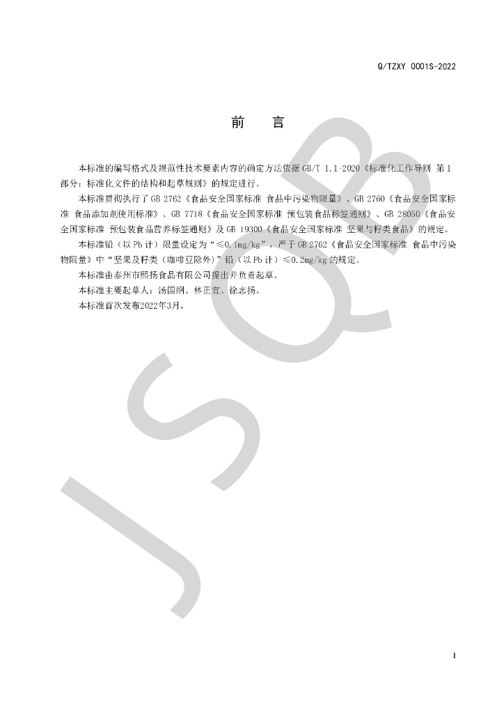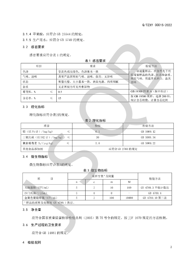 Q/TZXY 0001S-2022 白果仁