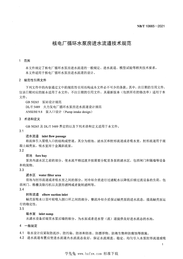 NB/T 10665-2021 核电厂循环水泵房进水流道技术规范