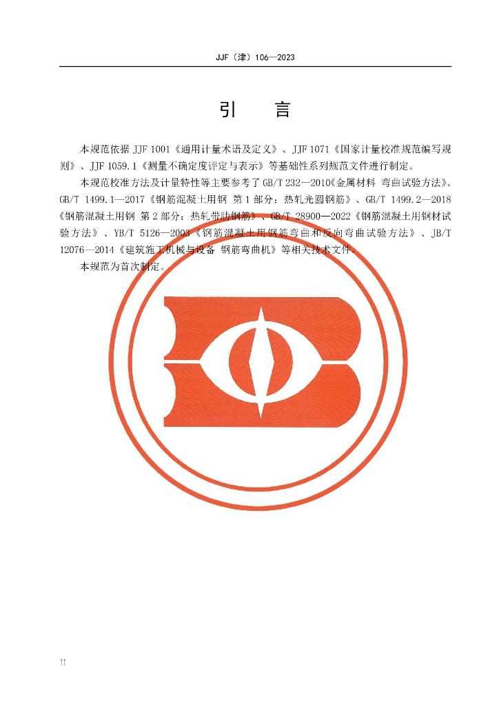 JJF(津)106-2023 钢筋弯曲试验机校准规范