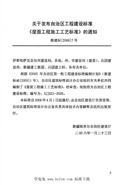 XJJ 021-2005 屋面工程施工工艺标准