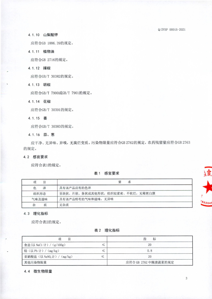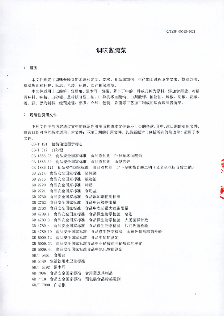 Q/ZYSP 0001S-2021 调味酱腌菜