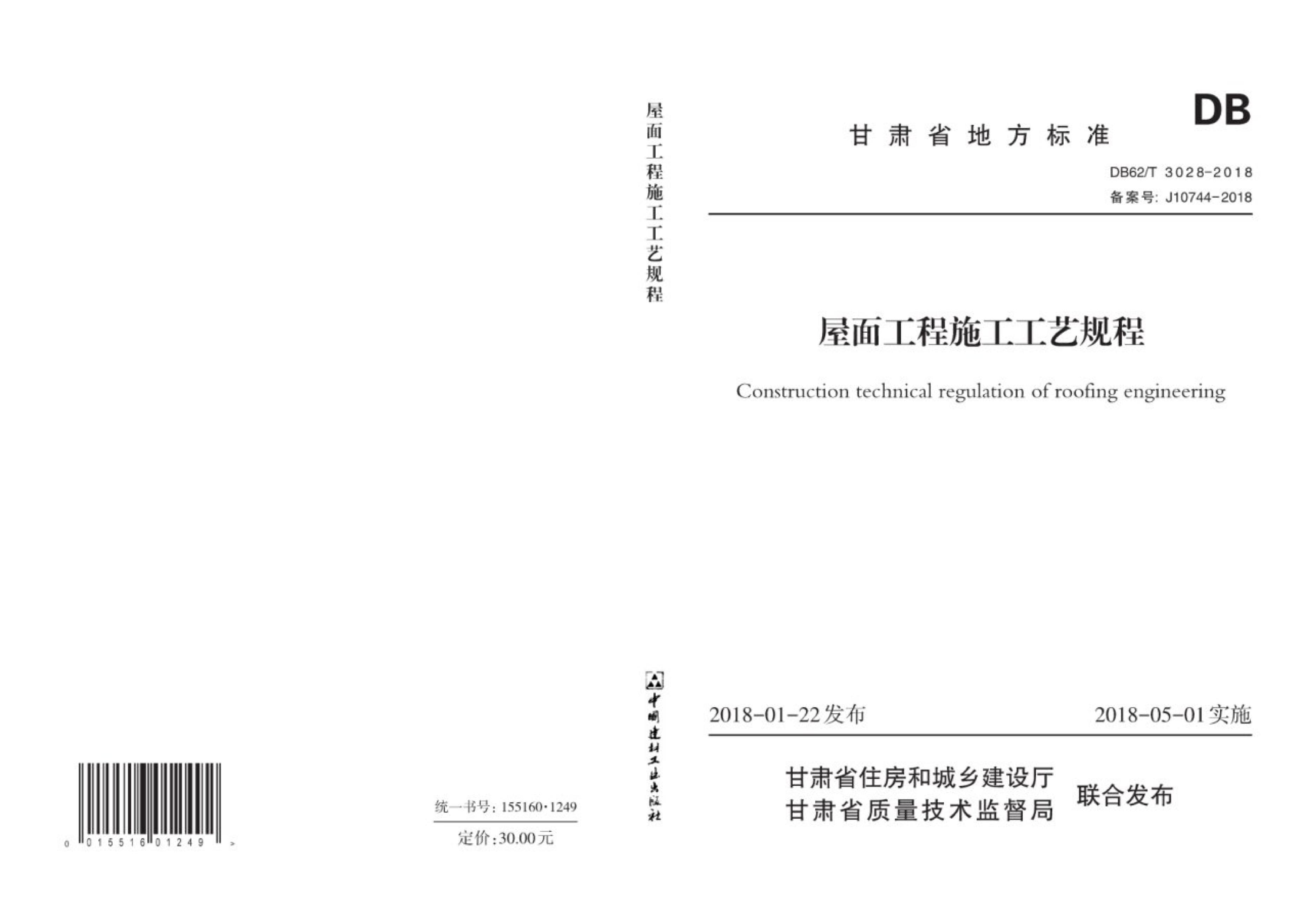DB62/T 3028-2018 屋面工程施工工艺规程