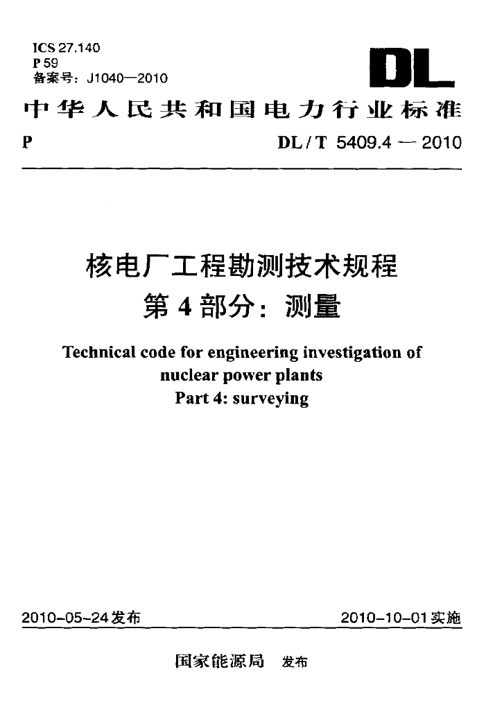 DL/T 5409.4-2010 核电厂工程勘测技术规程 第4部分:测量