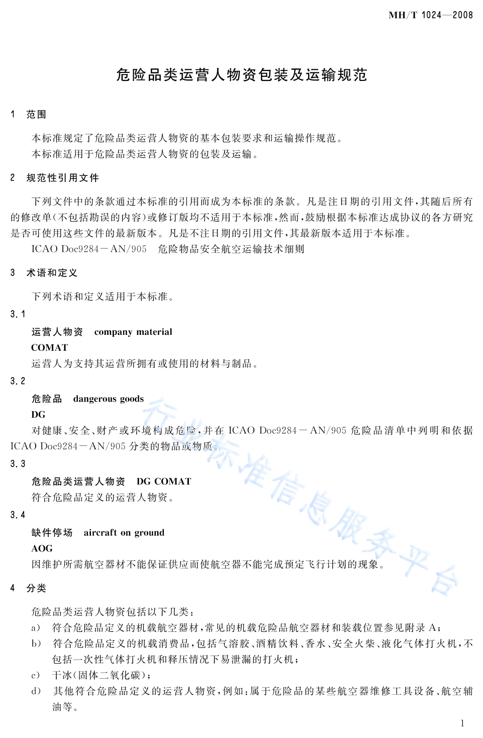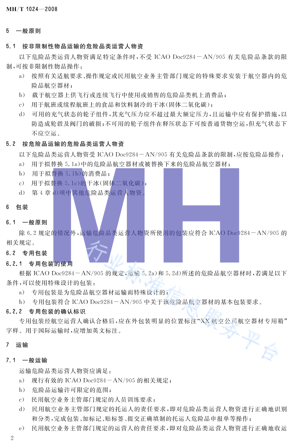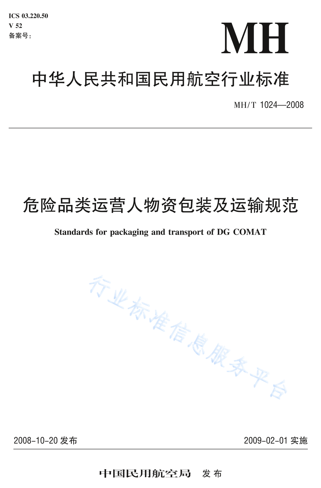 MH/T 1024-2008 危险品类运营人物资包装及运输规范