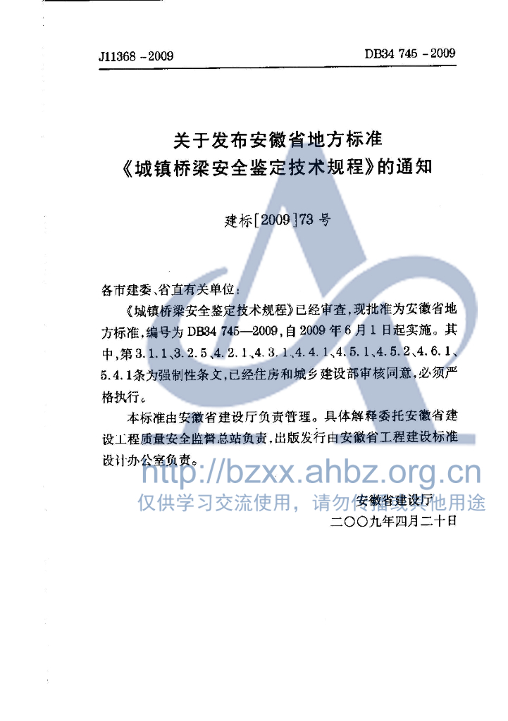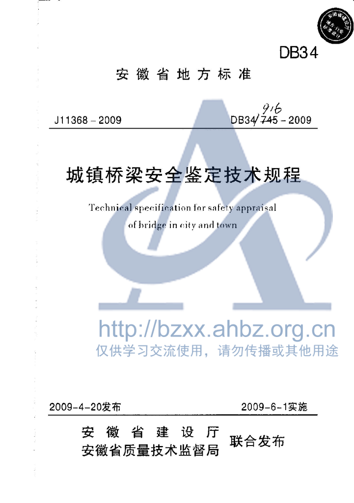 DB34/ 916-2009 城镇桥梁安全鉴定技术规程