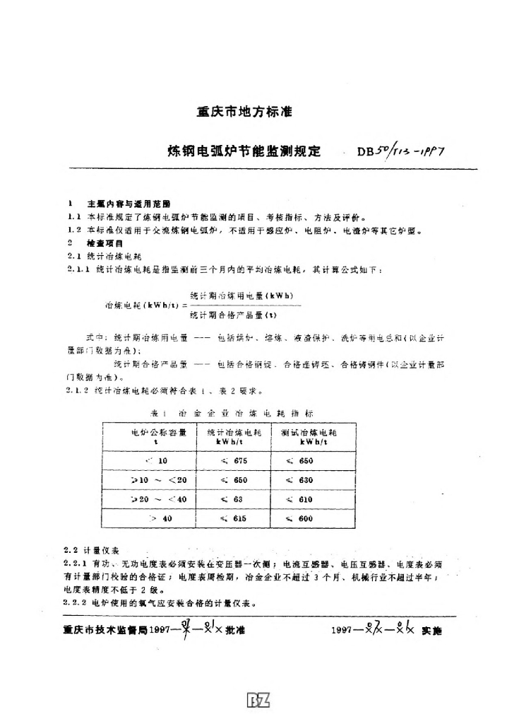 DB50/T 13-1997 炼钢电弧炉节能监测规定