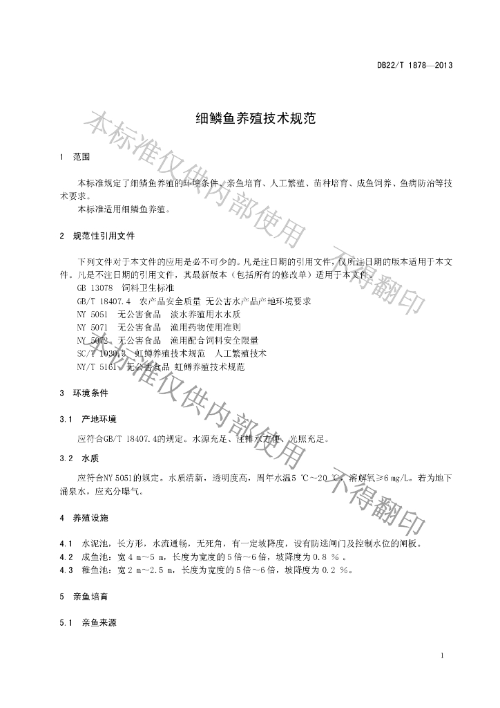 DB22/T 1878-2013 细鳞鱼养殖技术规范