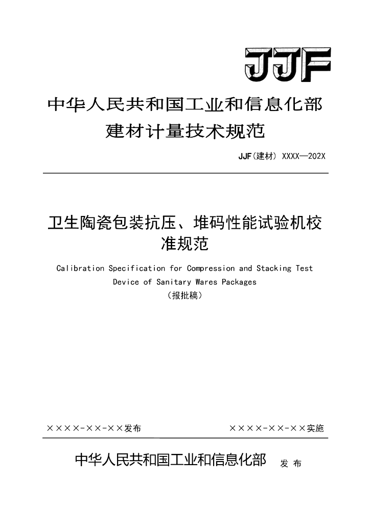 JJF(建材)210-2023 卫生陶瓷包装抗压、堆码性能试验机校准规范(报批稿)