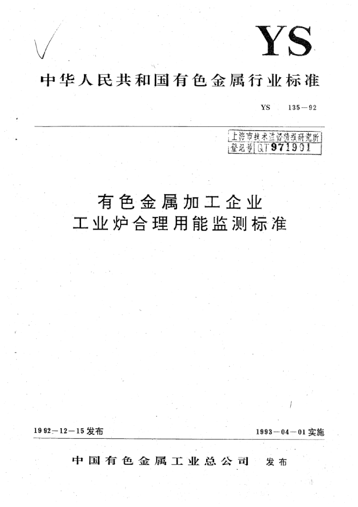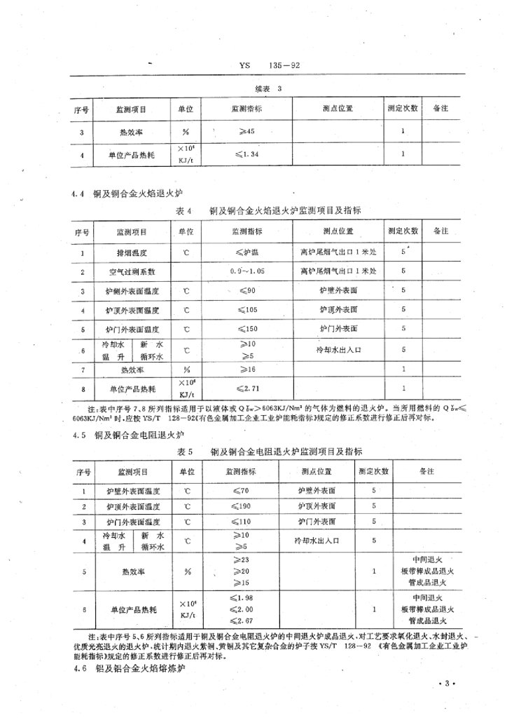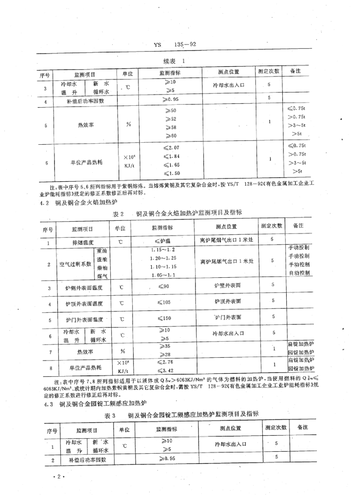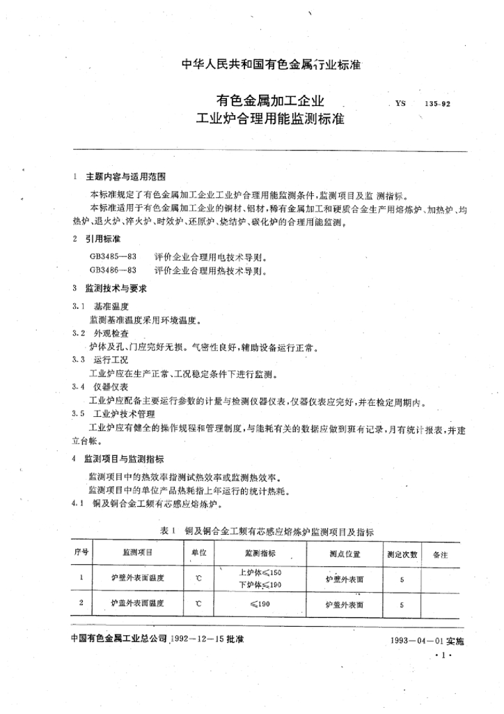 YS/T 135-1992 有色金属加工企业工业炉合理用能监测标准