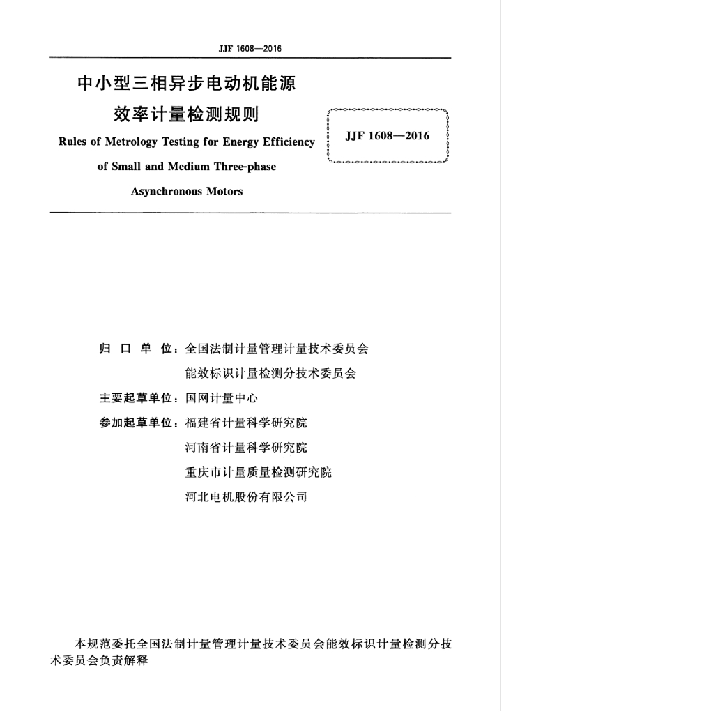 国网计量中心、福建省计量科学研究院、河南省计量科学研究院、重庆市计量质量检测研究院、河北电机股份有限公司