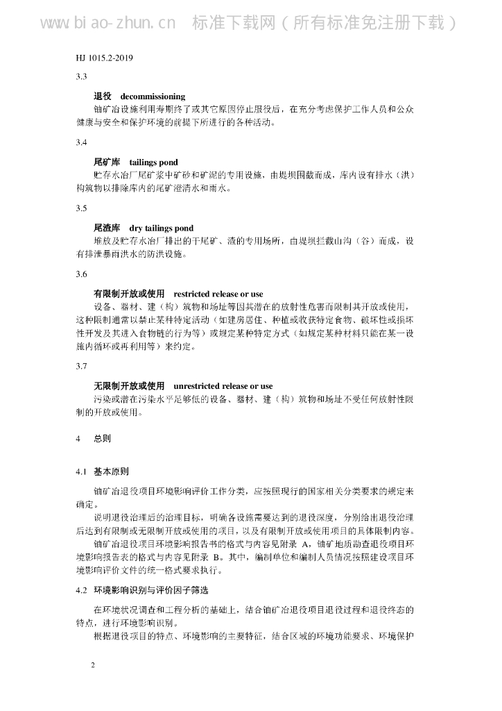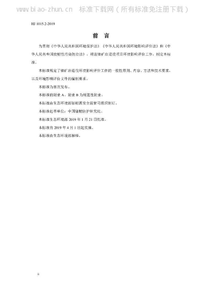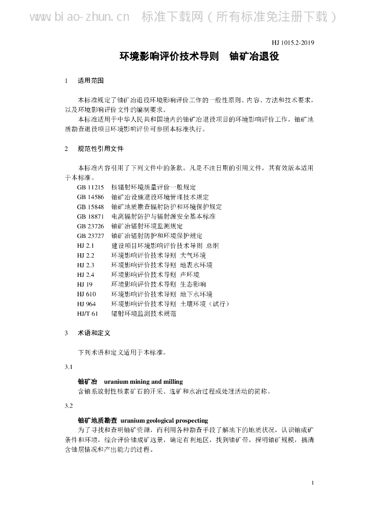 HJ 1015.2-2019 环境影响评价技术导则 铀矿冶退役