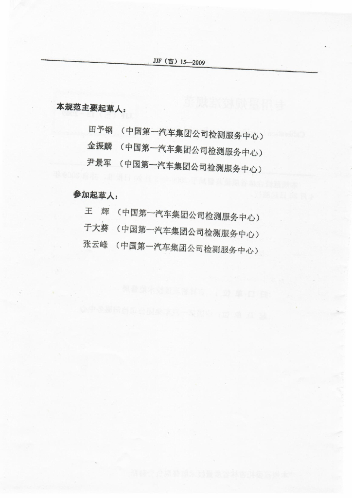 田予钢(中国第一汽车集团公司检测服务中心)、金振麟(中国第一汽车集团公司检测服务中心)、尹景军(中国第一汽车集团公司检测服务中心)、王辉(中国第一汽车集团公司检测服务中心)、于大葵(中国第一汽车集团公司检测服务中心)、张云峰(中国第一汽车集团公司检测服务中心)
