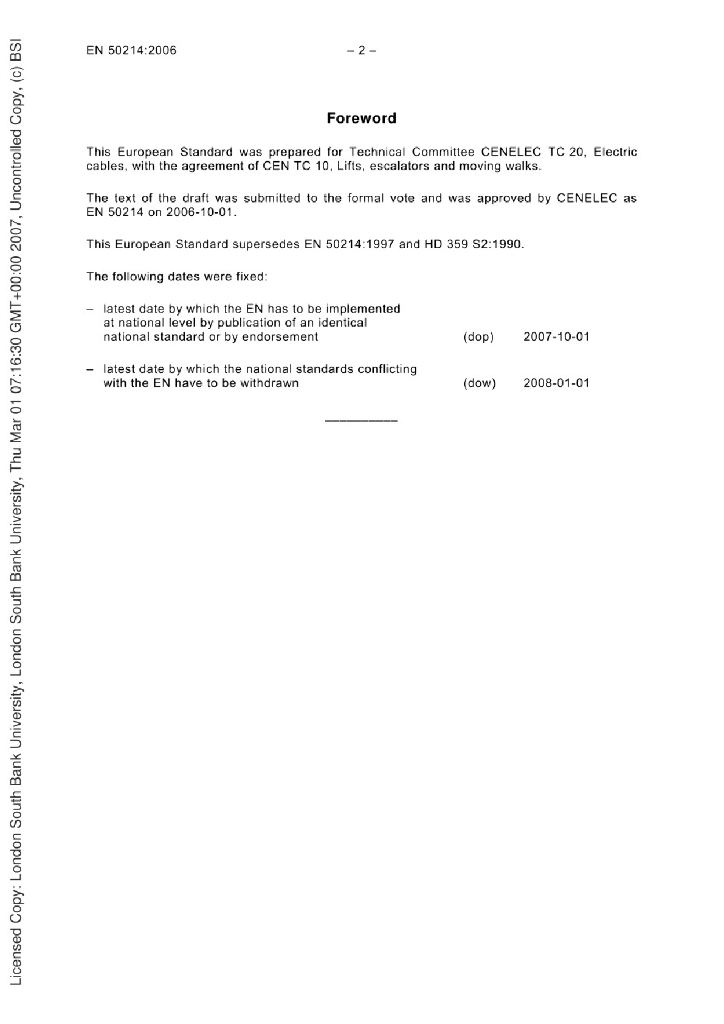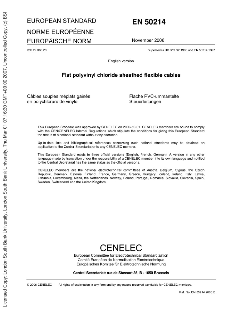 BS EN 50214:2006 扁平聚氯乙烯护套软电缆